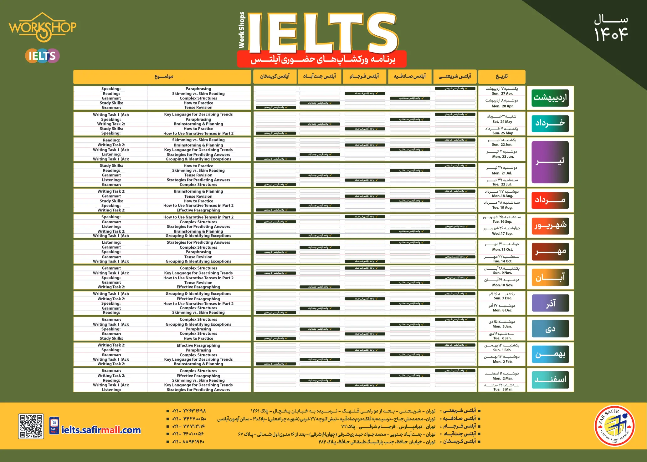 موسسه زبان سفیر گفتمان علاوه بر جلسات معمول کلاس، بر اساس نیازسنجیهای انجام شده در تمامی سطوح واحدهای مختلف، از سال ۹۷ اقدام به برگزاری کارگاههای رایگان آموزشی در کلیه شعب با موضوعات متنوع نمود.