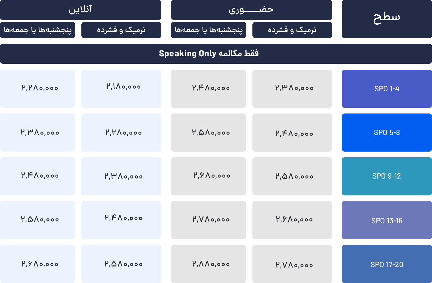 هزینه کلاس فقط مکالمه زبان انگلیسی در هر سطح چقدر است؟